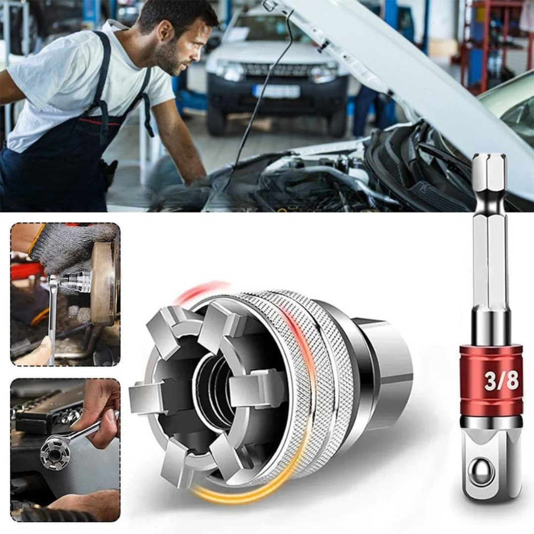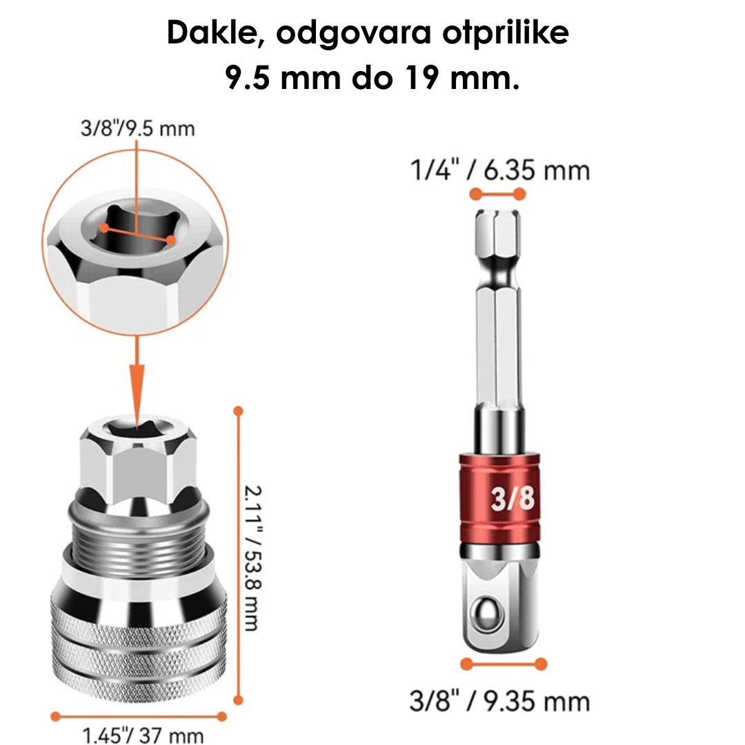 Univerzalnim nNastavak za Ključ je univerzalni alat koji se automatski prilagođava različitim veličinama šrafova, matica i vijaka. Izrađen od visokokvalitetnog vanadijum čelika, obezbeđuje snažan prijem i dugotrajnu izdržljivost čak i pri intenzivnoj upotrebi. Idealan je za kućne popravke, auto-mehaniku i uradi sam projekte, štedeći vreme i smanjujući potrebu za više različitih ključeva.