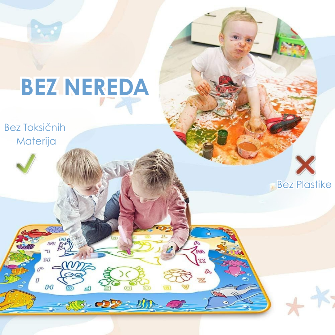 Vodeni Crtajući Tepih Za Decu je savršena edukativna igračka za decu uzrasta 3+ godine, koja omogućava beskrajno crtanje i bojanje bez nereda. Magične olovke se pune čistom vodom i tragovi nestaju za 3–10 minuta, omogućavajući deci da crtaju iznova i iznova. Praktičan, lagan i sklopiv, idealan je za igru kod kuće, na putovanjima ili napolju.